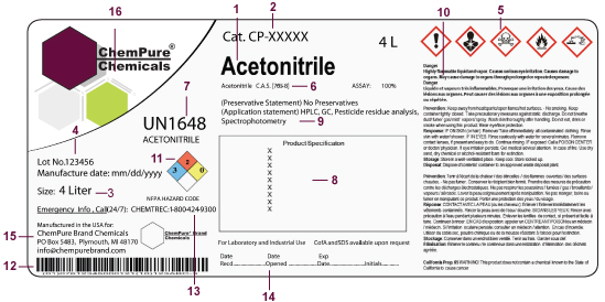 This section is intended to help customers Identify the different items on the Chempure Brand Chemical product label. Each Chempure Brand Chemical label contains an up-to-date summary of significant health and safety data you need to know when handling a particular chemical.
